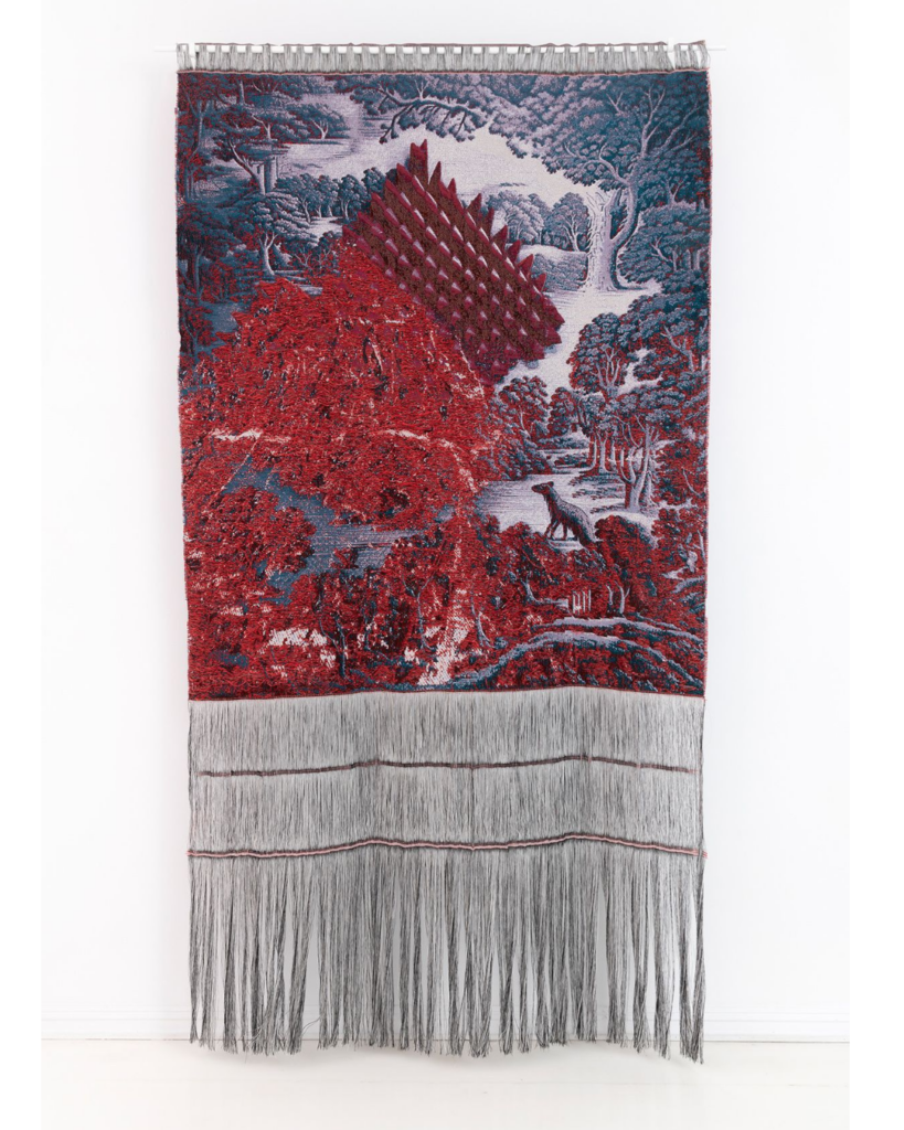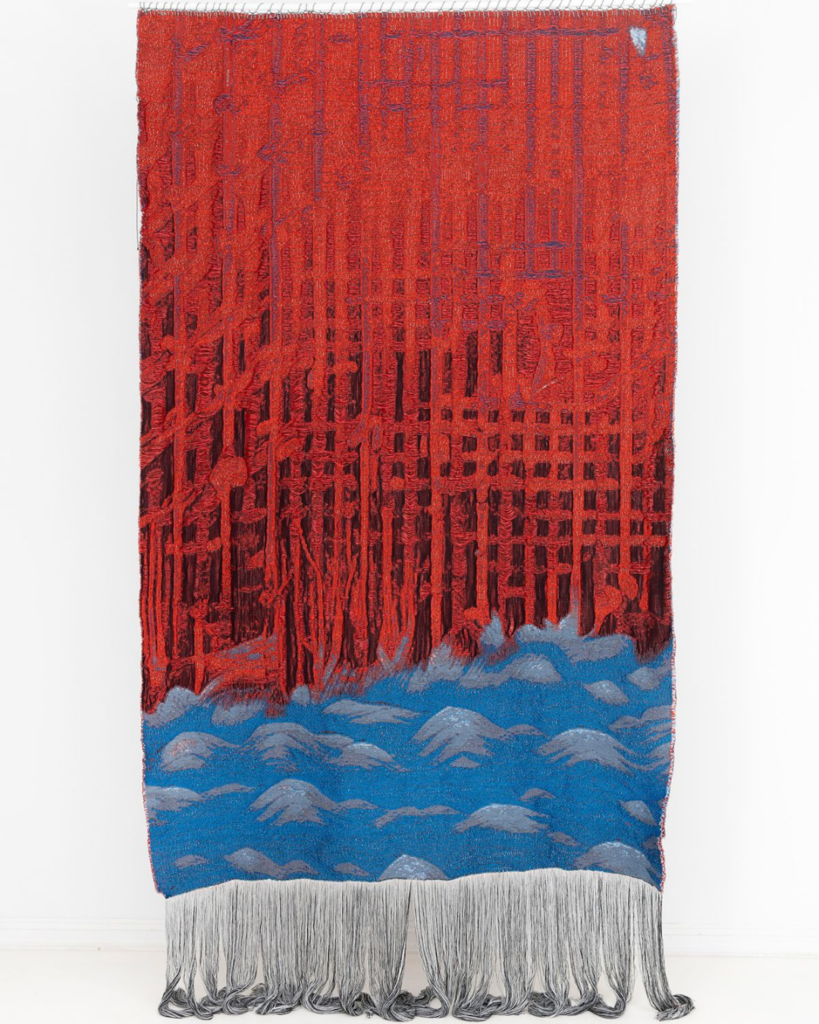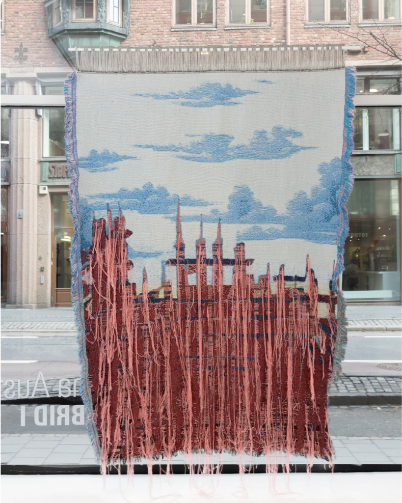 Austi holds a Fine Arts degree from the Bergen Academy of Art and Design, where she completed both her undergraduate studies, from 2006 to 2009, and her master’s degree, from 2009 to 2011, in the textiles department. She has dedicated her practice to digital Jacquard weaving, a technique that allows for the creation of complex images on the loom through computer programming. Her curiosity about the woven surface is, by her own account, the driving force behind her entire body of work.