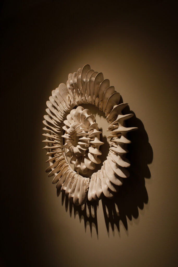 “We exploit animals and harm the Earth. That horn of plenty may have nothing left to give,” the artist says. The statement runs through her entire body of work: growth and decay share the same form, just as they would in any living ecosystem.