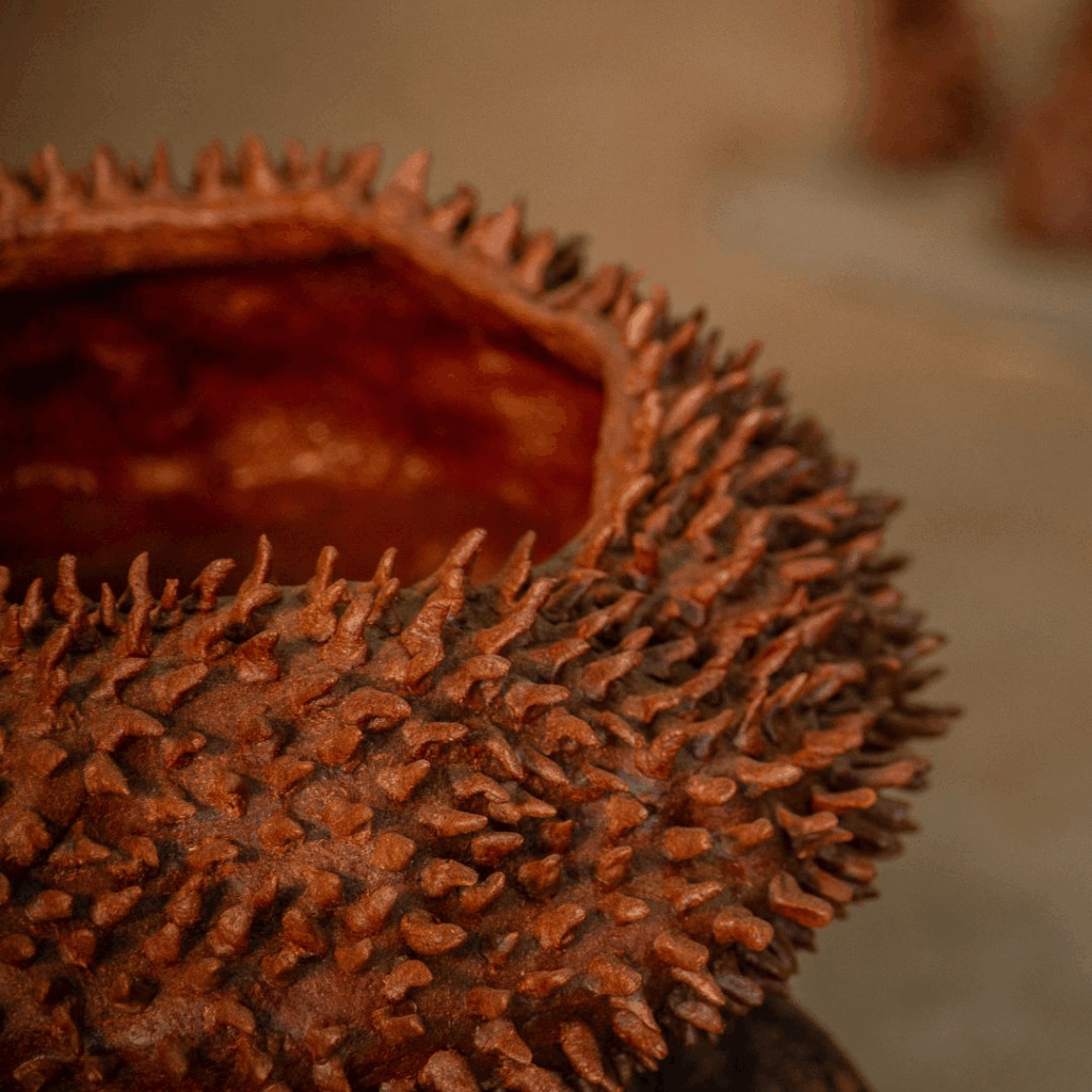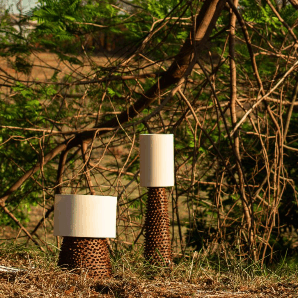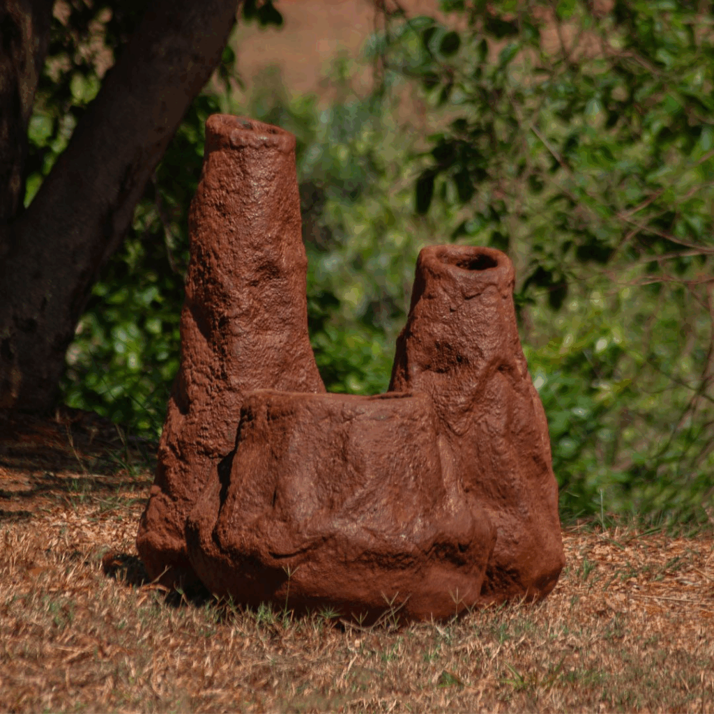 The Cupinzeiro Collection investigates the structures built by termites. The work stems from the principle that all greatness begins in the invisible — a reference to the collective and meticulous work of these insects that create complex architectures. The collection translates the textures and organic forms of termite mounds into objects, highlighting construction processes that occur beyond human sight.