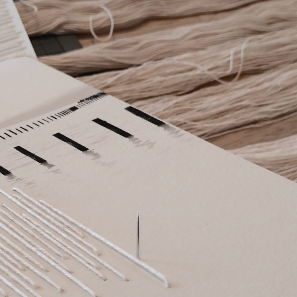 Studio view: cotton threads and acrylic paint applied over photographic print