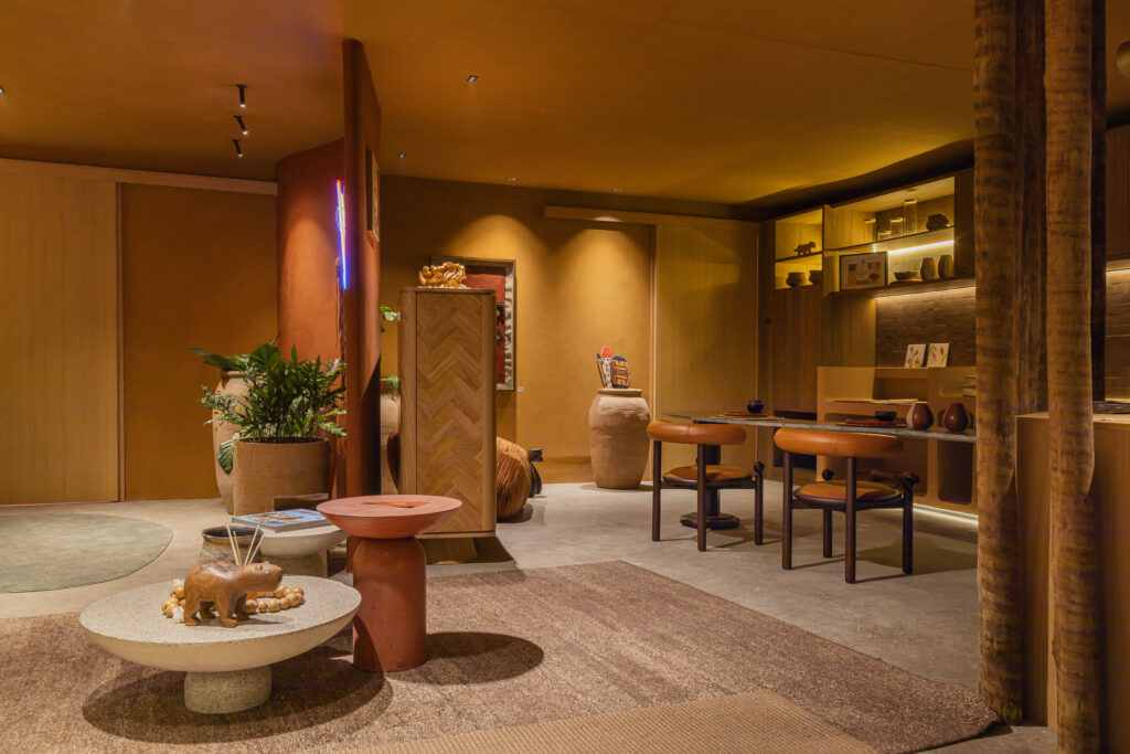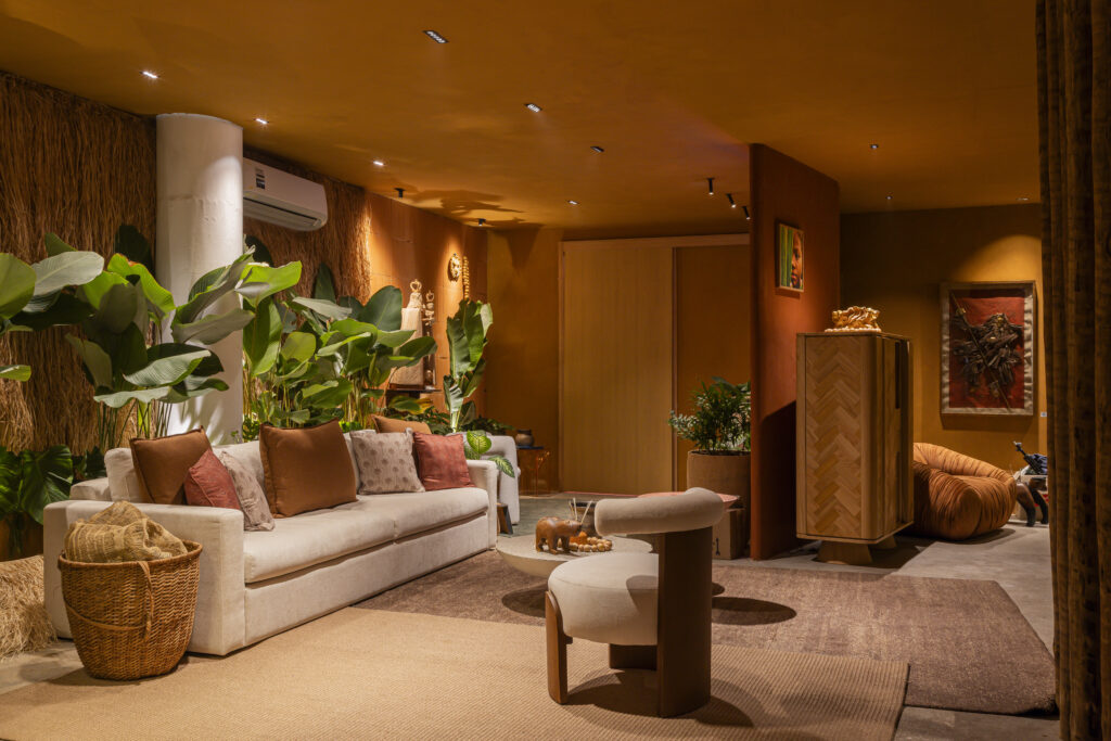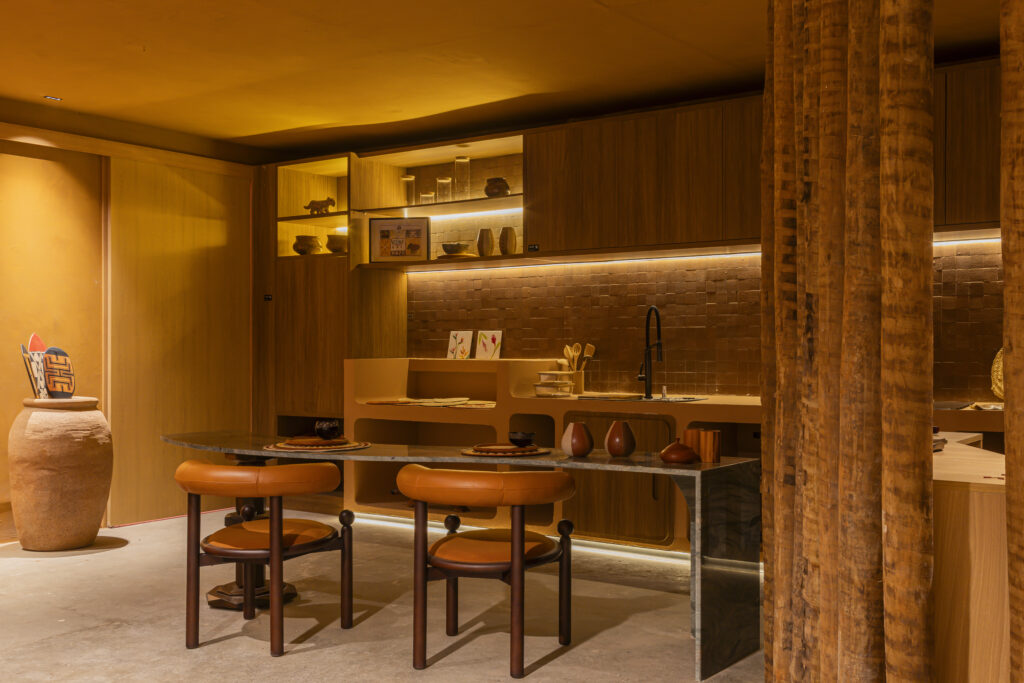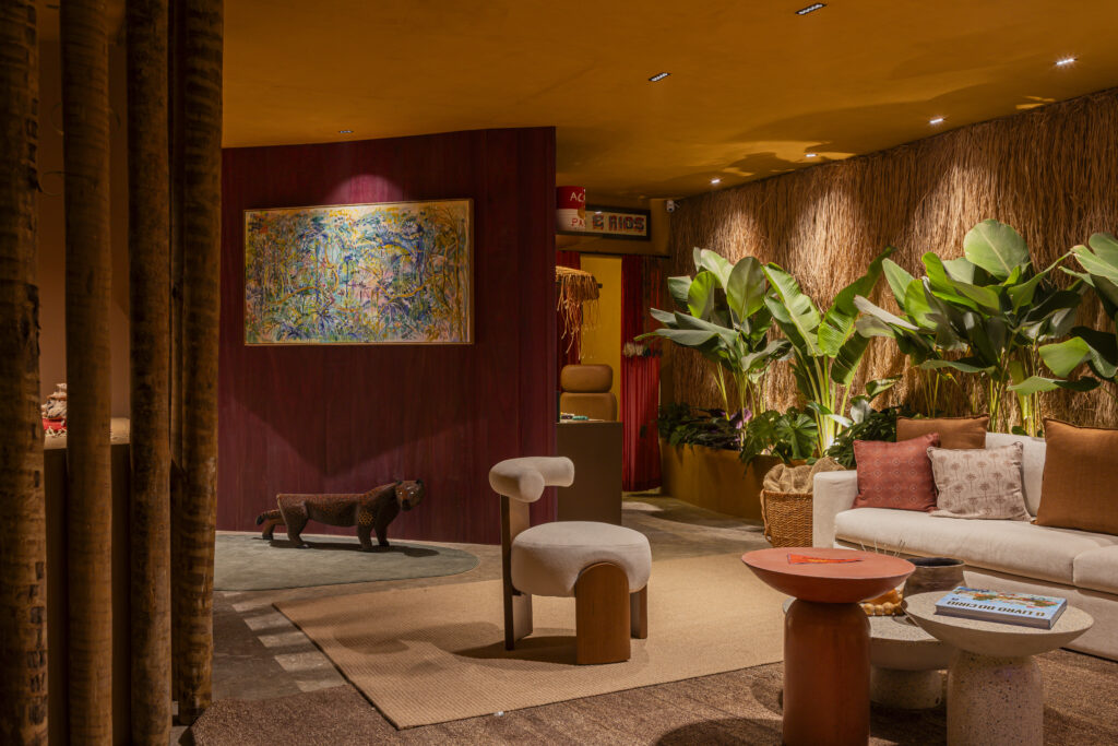 Designed by Studio Tuca, the architecture and design firm led by Tuane Costa, the loft ‘Caminho dos Rios’ represents the state of Pará at the inaugural show, celebrating Amazonian identity through local materials, indigenous art, and ancestral knowledge.