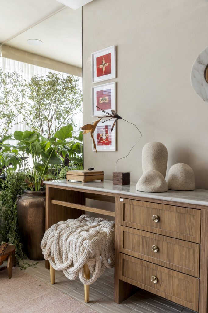 Pieces from diverse origins coexist in Casa Corcovado deliberately, reflecting an identity in permanent construction. Art plays a structural role in the composition: prints and textures introduce movement, while objects and collections activate layers of memory, faith, and cultural depth. The result is an environment that does not exhaust itself on first reading, revealing new layers with every visit.