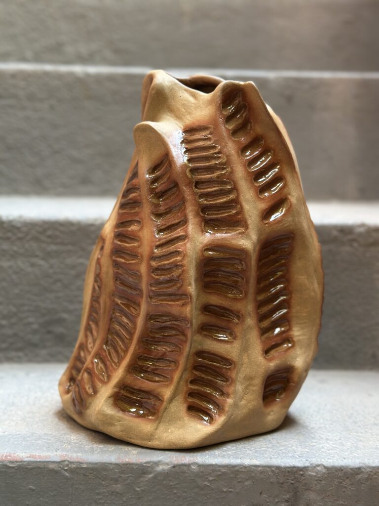 With pieces of unique identity, full of organic textures and shapeless forms, the artist explores in her work the connection with nature and northeastern culture. Her ceramics evoke memories of fruits, sea barnacles and corals that populated her childhood between the beach of Recife and the Pernambuco hinterland. ‘Pernambuco inspires me with its rich stories, which I keep in my memory and multiply in my craft as a mission,’ she says.