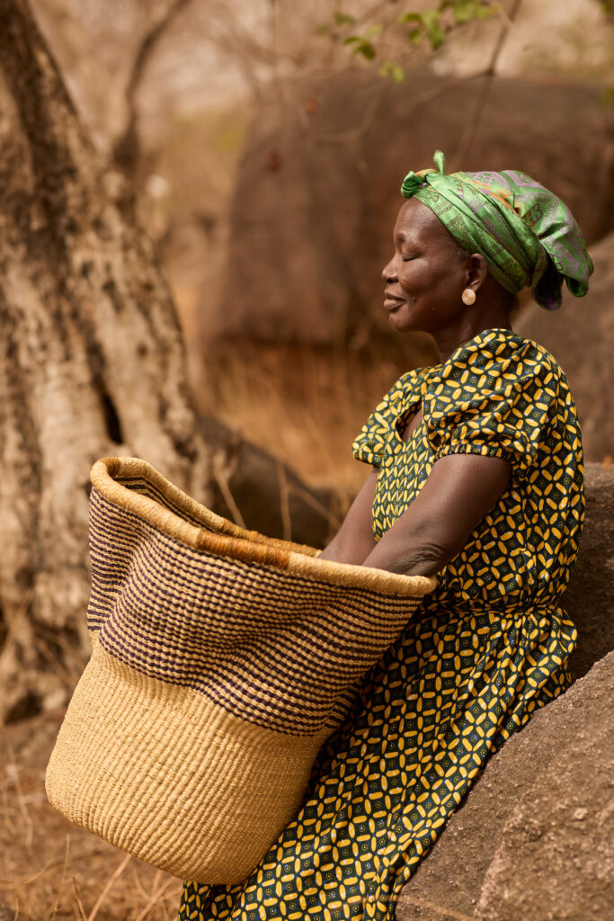 The production process takes place in the shade of the Baba tree, a symbol of strength and peace in local villages. It is there that traditional weaving techniques are taught and perfected. Elephant grass, an abundant material in the African savannahs, is harvested sustainably and transformed into durable products.