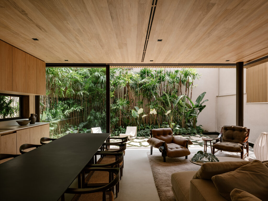 Moveable wooden screens and lush vegetation create secluded urban retreat in São Paulo’s leafy Jardim Paulistano