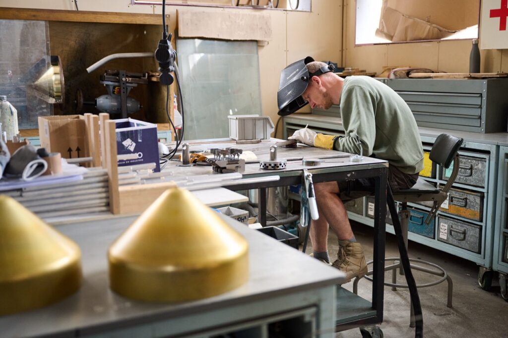 The partnership between Tineke and Nathan operates in a well-defined dynamic: she — conceptual thinker and weaver of dreams — begins each new project with meticulous sketches and delicate models, often ignoring practical or production limitations. Then Nathan — inventor and analyst — intervenes, working in a workshop that resembles a laboratory. After materials testing and technical experiments, challenging obstacles are overcome.