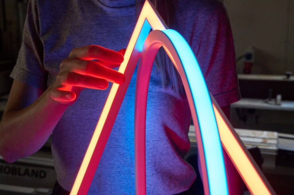 Among their best-known projects are the Light Forest series — lamps that branch like plants — and Contour — a graphic interplay of lines with light, made to measure in diverse and often unique variations.