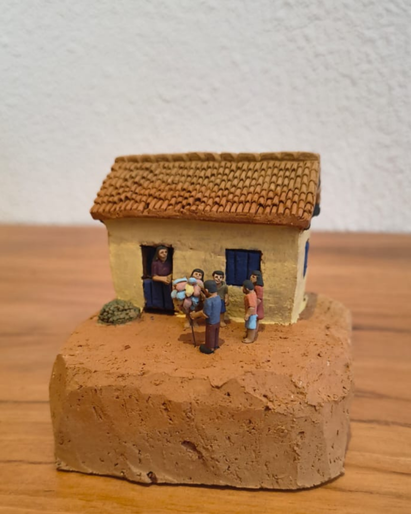 His journey began at age 13, when he learned to prepare clay for his uncle João das Alagoas, a pioneer of figurative clay work in Capela. Initially, Cláudio produced pieces measuring 20 to 30 centimeters. In 2011, inspired by the work of artist Arlindo Monteiro — who creates miniatures with matchsticks — he decided to innovate. “I asked God for work that was different from what others were doing in the studio,” he says. The first 2-centimeter miniature sold quickly, and the demand for personalized gifts propelled the new format.