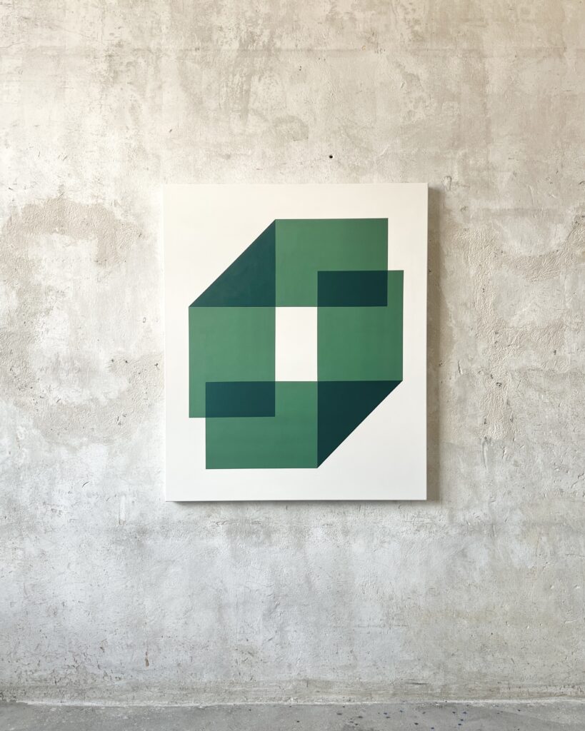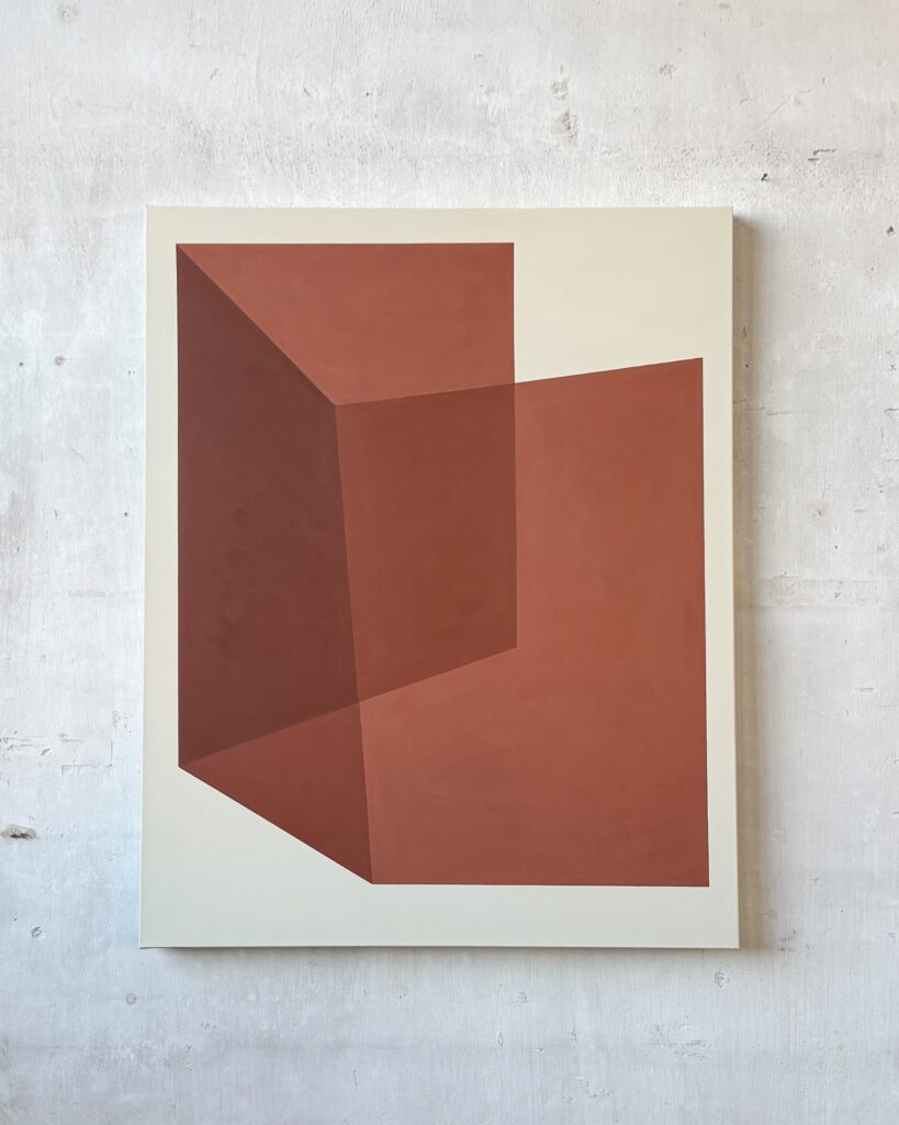 Her artistic approach is based on the belief that feelings can be visually materialized. “I create minimalist art that invites self-reflection. Emotions and perspectives take shape in abstract forms – becoming visible and tangible,” the artist states. This philosophy permeates works characterized by the use of hard edges that frame fields of homogeneous color, creating a striking interplay between constraint and harmony.