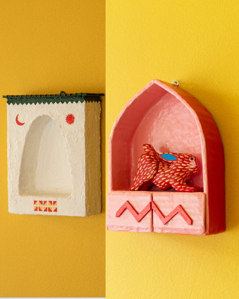 The pieces dialogue with the rich Mexican artisanal tradition — which includes alebrijes, papel picado, ceramics, and weaving — but transport it to a contemporary, abstract, and conceptual visual vocabulary. It is not about folklorizing traditions, but about updating them, demonstrating their vitality and relevance.