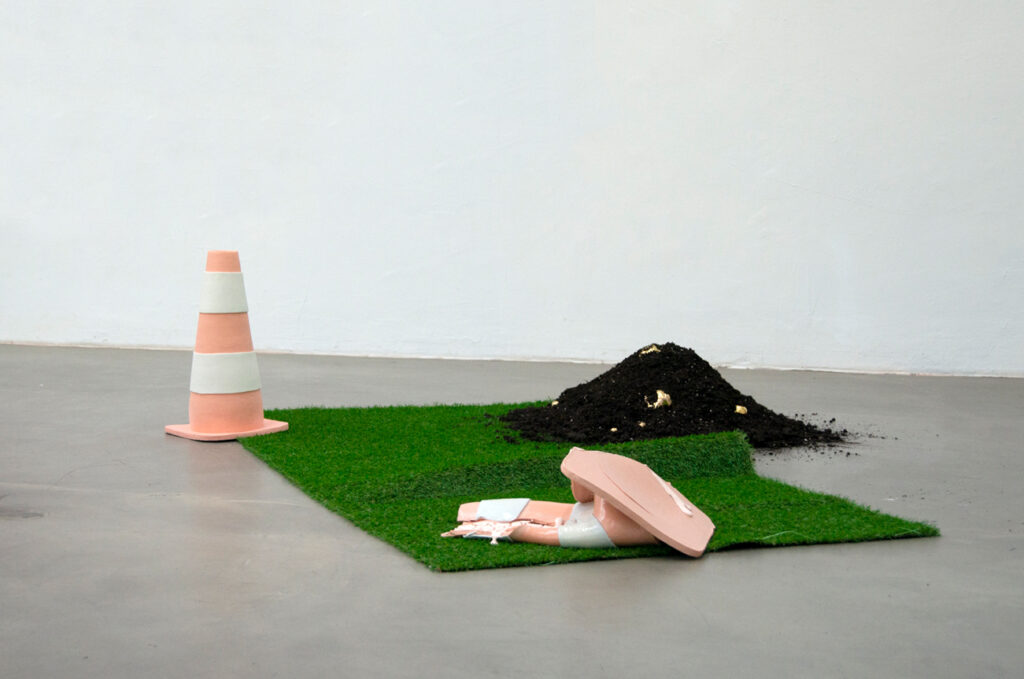 Fröse’s work focuses on materiality and the tensions that emerge from the confrontation between opposites: fluidity versus solidity, movement versus immobility, aesthetics versus imperfection. The artist works primarily with ceramic, plastic, plaster, glass, and textile – materials chosen not only for their visual qualities, but above all for the haptic effect they produce. “All these materials have their own will and come accompanied by a certain stubbornness by their own nature – just like me,” states the sculptor.