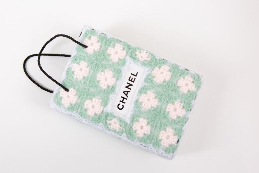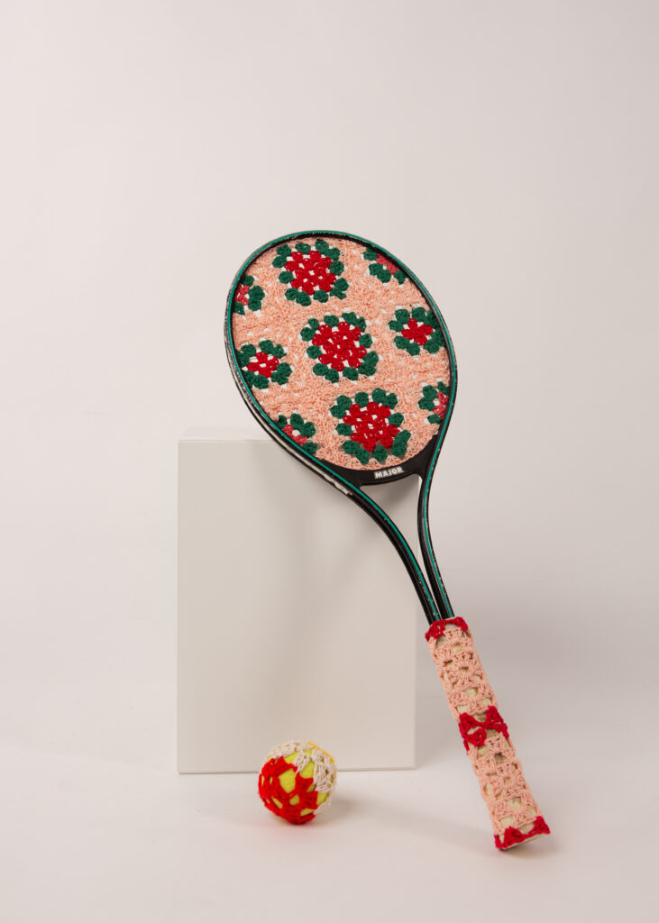 In 2023, she was invited to design the trophies for the international short-film festival “Les Regards de l’ICART,” whose theme was “The Senses.” She chose to wrap cinema clappers in crochet, bringing together sound, sight, and touch in a single object.
